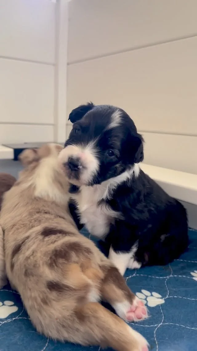 At Painted Blue Aussies, we proudly embrace the natural beauty of our Australian Shepherd puppies and Mini Aussie (Also known as Mini American Shepherd) puppies with a goal to leave tails intact. This decision reflects our commitment to the well-being and individuality of our puppies. We value transparency and honor our commitments; therefore, we adhere to stud contracts that require tail docking. There are occasions where a puppy is born with a natural bobtail, as we do have that gene in our program. Additionally, if a puppy is born with a tail that is kinked or folded, we do have those docked for their safety and long-term wellbeing.